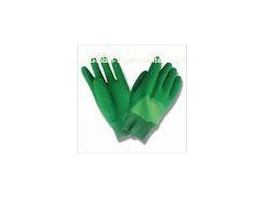 Interlock green cotton liner, green color knitted wrist, open back, coated with green latex, crinkle finished